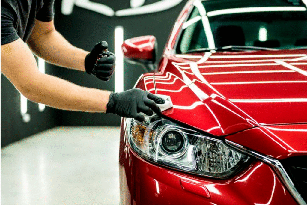 Limpeza detalhada da pintura, descontaminação da pintura, polimento técnico e aplicação do vitrificador ou coating cerâmico.